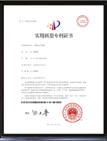 押出機廠家贊揚榮譽-實用新型專利證書